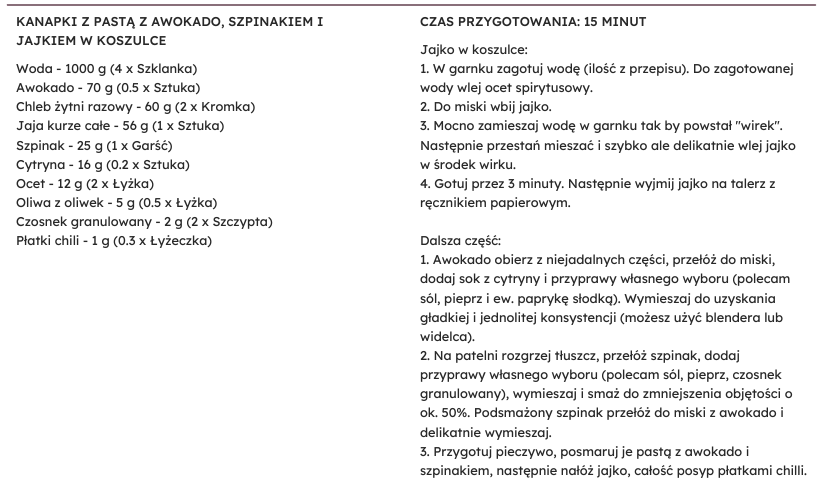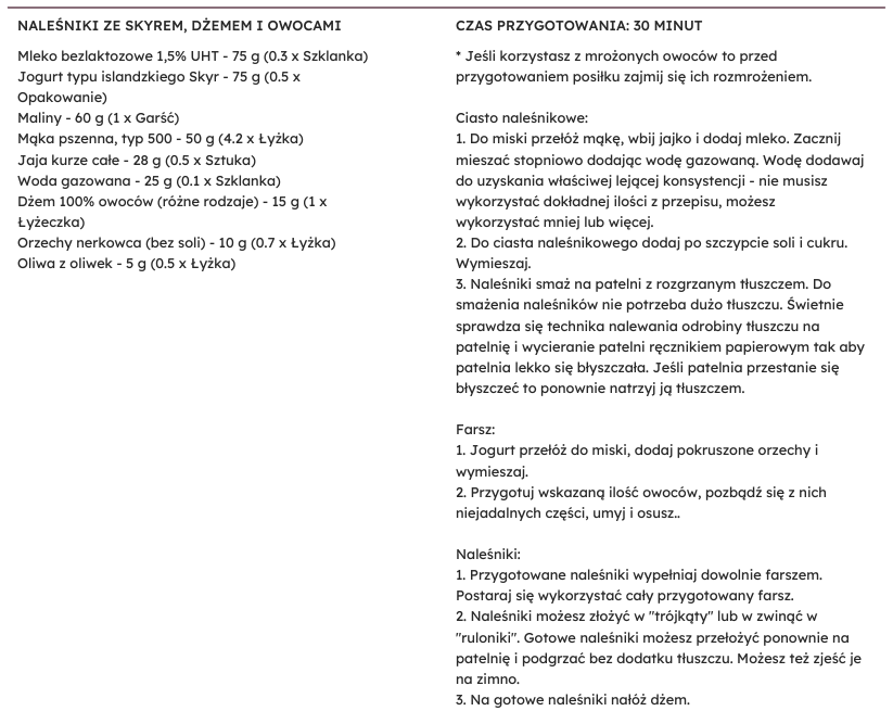 W przypadku indywidualnej współpracy dietetycznej czas przygotowania posiłków jest dopasowywany do Twojego stylu życia np. jeśli masz mało czasu na robienie śniadań to proponuję tylko szybkie opcje śniadaniowe. Jeśli natomiast w weekendy masz więcej czasu na gotowanie to w soboty i niedziele posiłki są bardziej czasochłonne.